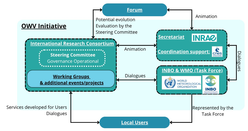 One Water Vision (OWV) is an international initiative launched in December 2024 during COP16 in Riyadh at the One Water Summit. The initiative was established under the coordination of six French organizations, including INRAE as the Secretariat and CNES as the National Coordinator. OWV also includes an International Research Consortium (IRC) and a Task Force to support and liaise with end users.
